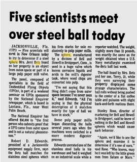 La historia llamó la atención de medios como The New York Times y la televisión nacional. Posteriormente, la esfera fue examinada por científicos del Centro Naval de Guerra Aérea, ingenieros de Oceanographic Institute, e incluso por expertos de la NASA. Todos confirmaron que el objeto era real y poseía propiedades inusuales, pero no lograron determinar su origen ni su propósito. Al intentar realizar estudios más invasivos, como perforarlo o radiografiarlo con alta potencia, la familia Betz se negó, por temor a dañar el objeto .