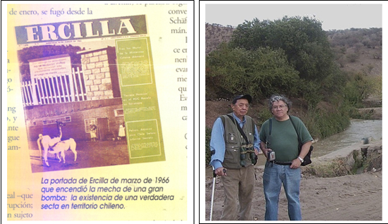 La portada clave de la Revista Ercilla que dio a conocer la existencia de Colonia Dignidad en el mundo, a la izquierda en la foto, el periodista Osvaldo Muray el gestor de la noticia junto al autor de este articulo.