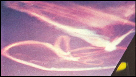 Reitero que me refiero a un tipo concreto de situación y comportamiento del fenómeno. No obstante, queda por considerar la posible vinculación entre los objetos “reales”, sólidos, materiales sin lugar duda, y esas luces, errantes, esas maravillas lumínicas que desbordan cualquier expectativa, “soles viajeros” que evolucionan con un cierto carácter de inteligencia, también cabe la posibilidad de que estas “perlas celestes” no sean independientes, sino que son dirigidas desde otro lugar. |