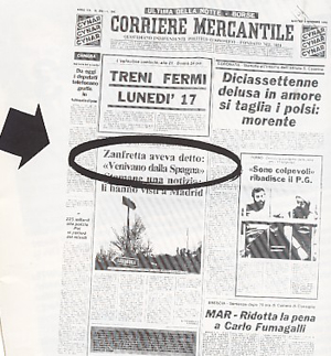 A la mañana siguiente, martes 04 diciembre 1979, la Agencia Internacional Ansa trasmitió a todas las redacciones de los diarios italianos el siguiente flash: