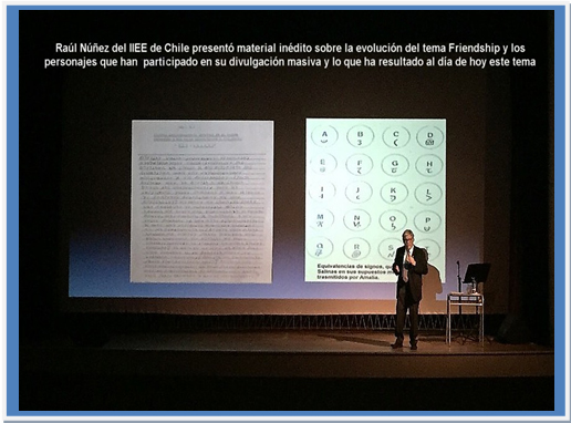 La jornada final se desarrolló con la presentación el ufólogo del Punta Arenas Eugenio Bahamonde , quien disertó sobre la presencia del fenómeno Ovni en Magallanes, haciendo un completo recuento desde los albores de la historia austral hasta nuestros días. Dio clausura al certamen el investigador Raúl Núñez, quien presento el tema titulado: “Friendship: Un largo trayecto de interrogantes”. Una exposición profunda de como un tema supuestamente ufológico se coinvierte en sociológico ayudado por los medios de comunicación y por personas que dan prioridad a sus inquietudes personales ante de saber que hay realmente detrás de este “enigma”. Una verdadera declaración de principios éticos muy lejos de lo que prima en el mundo actual sobre el fenómeno Ovni. |