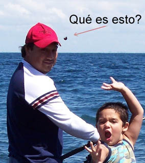Las fotos anteriores y posteriores a estas 2 fotos (que son consecutivas… la primera el objeto esta aparentemente lejos cerca de la gorra del Sr. Venegas y la segunda aparentemente más cerca y sobre su hijo) no muestran esta imagen.