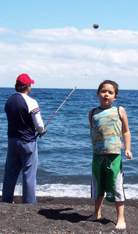 - Un objeto de la arena que es de tipo volcánica (negra) que lanzo su hijo, pero la diferencia en tiempo de las fotos según su señora debió ser de varios segundos, y la distancia recorrida aparente podría verse explicado por un cambio de foco (acercamiento del lente)