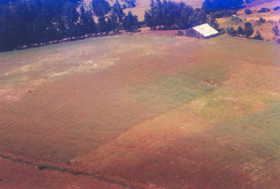| Marcas dejadas por un extraño objeto luminoso en la Parcela "El Peral" de Angol en el año 1985. Hasta el día de hoy en el suelo donde estuvo esta extraña luminosidad no hay vegetación normal |